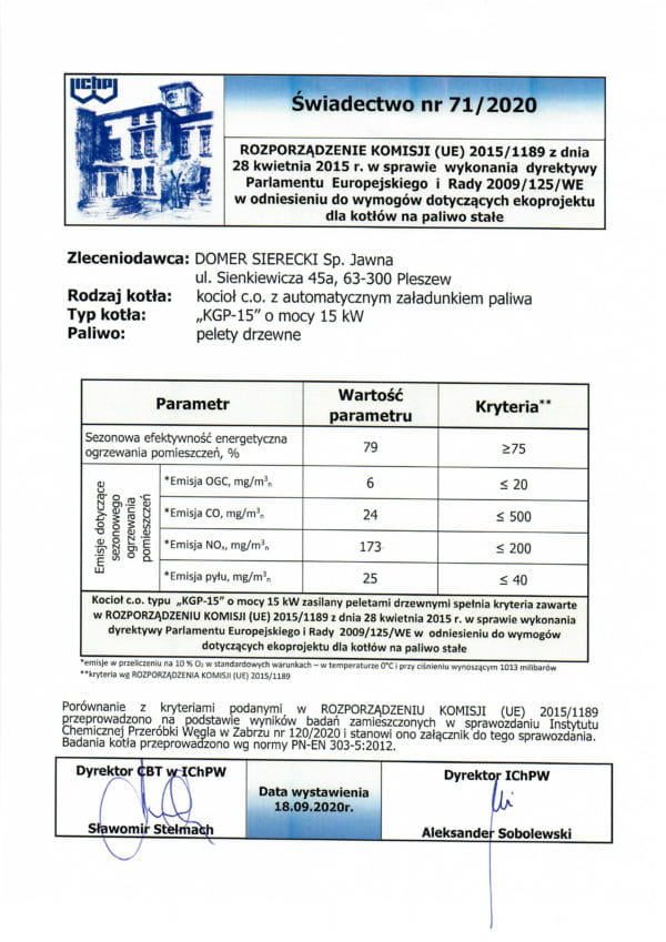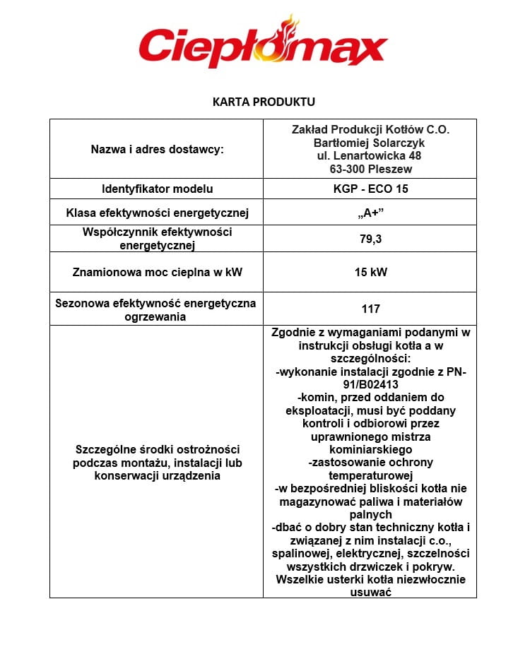 - atest potwierdzający zgodność z normą PN-EN 303- 5:2012 - 5 klasa i Ecodesign