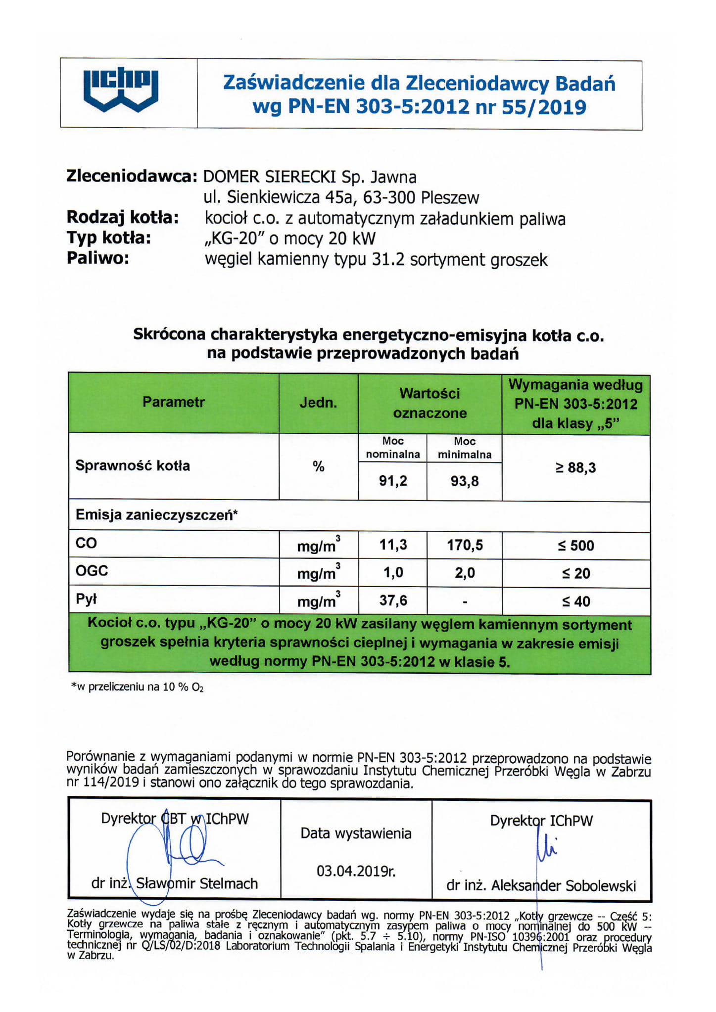 - atest potwierdzający zgodność z normą PN-EN 303- 5:2012 - 5 klasa i Ecodesign