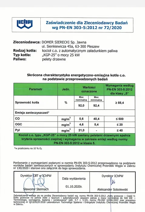- atest potwierdzający zgodność z normą PN-EN 303- 5:2012 - 5 klasa i Ecodesign