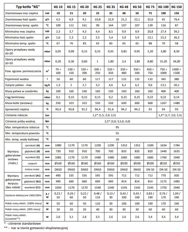 - typ kotła: KG