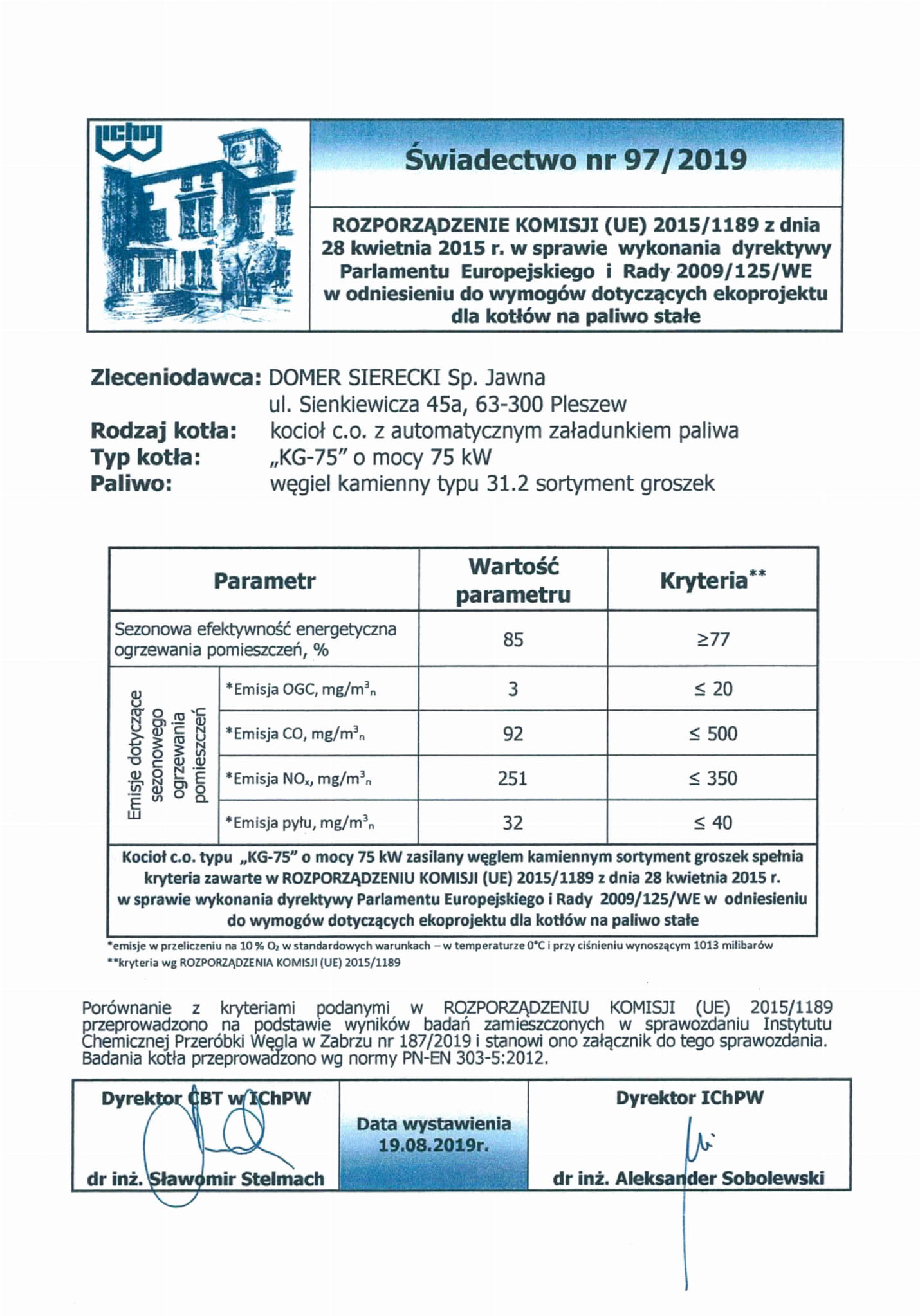 - karta produktu kotła