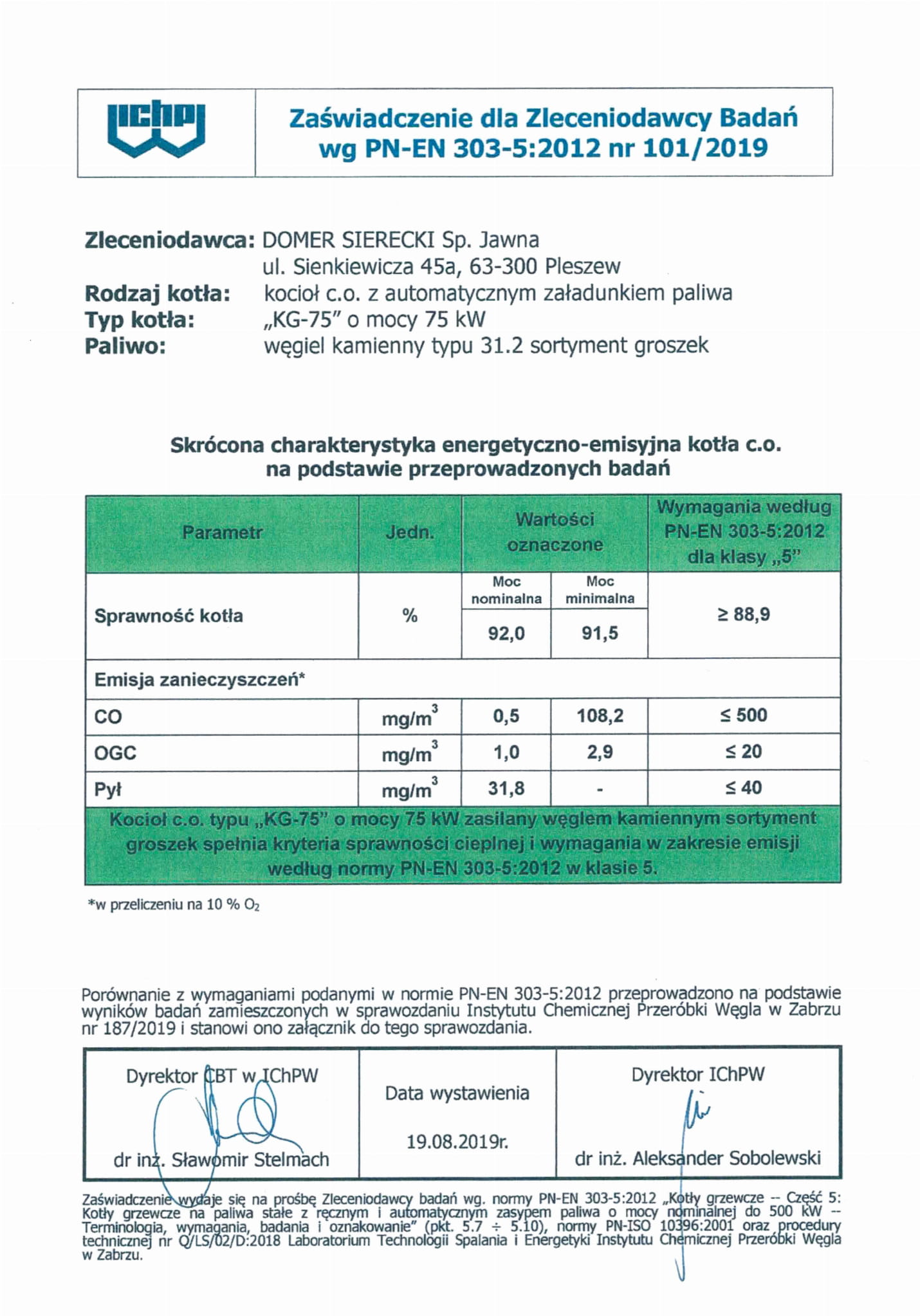 Kotły serii KG są kotłami niskotemperaturowymi systemu otwartego i nie podlegają warunkom dozoru technicznego, to nowa generacja kotłów o standardzie europejskim z automatycznym podawaniem paliwa wyposażonym w komorę spalania z ceramiką i wymiennik ciepła. Wprowadzenie nowych rozwiązań konstrukcyjnych tj. ceramiki oraz odpowiedni kształt i układ elementów części konwekcyjnej kanałów konwekcyjnych powoduje redukcję emisji szkodliwych substancji do granicznych wartości zanieczyszczeń i uzyskanie wysokich sprawności zgodnych z wymaganiami PN-EN 303-5;2012 w klasie 5 i ecodesignu, co potwierdza wysokie własności ekologiczne kotła na najwyższym poziomie.