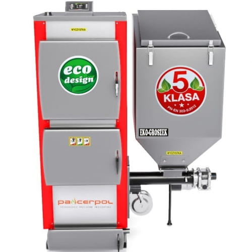 - podajnik Pancerpol w stalowej obudowie z żeliwnym stałym paleniskiem