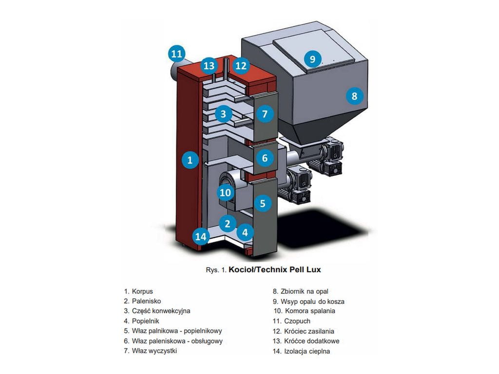 Kotły serii Technix Pell Lux są kotłami niskotemperaturowymi systemu otwartego i nie podlegają warunkom dozoru technicznego, to nowa generacja kotłów o standardzie europejskim z automatycznym podawaniem paliwa wyposażonym w komorę spalania i wymiennik ciepła.