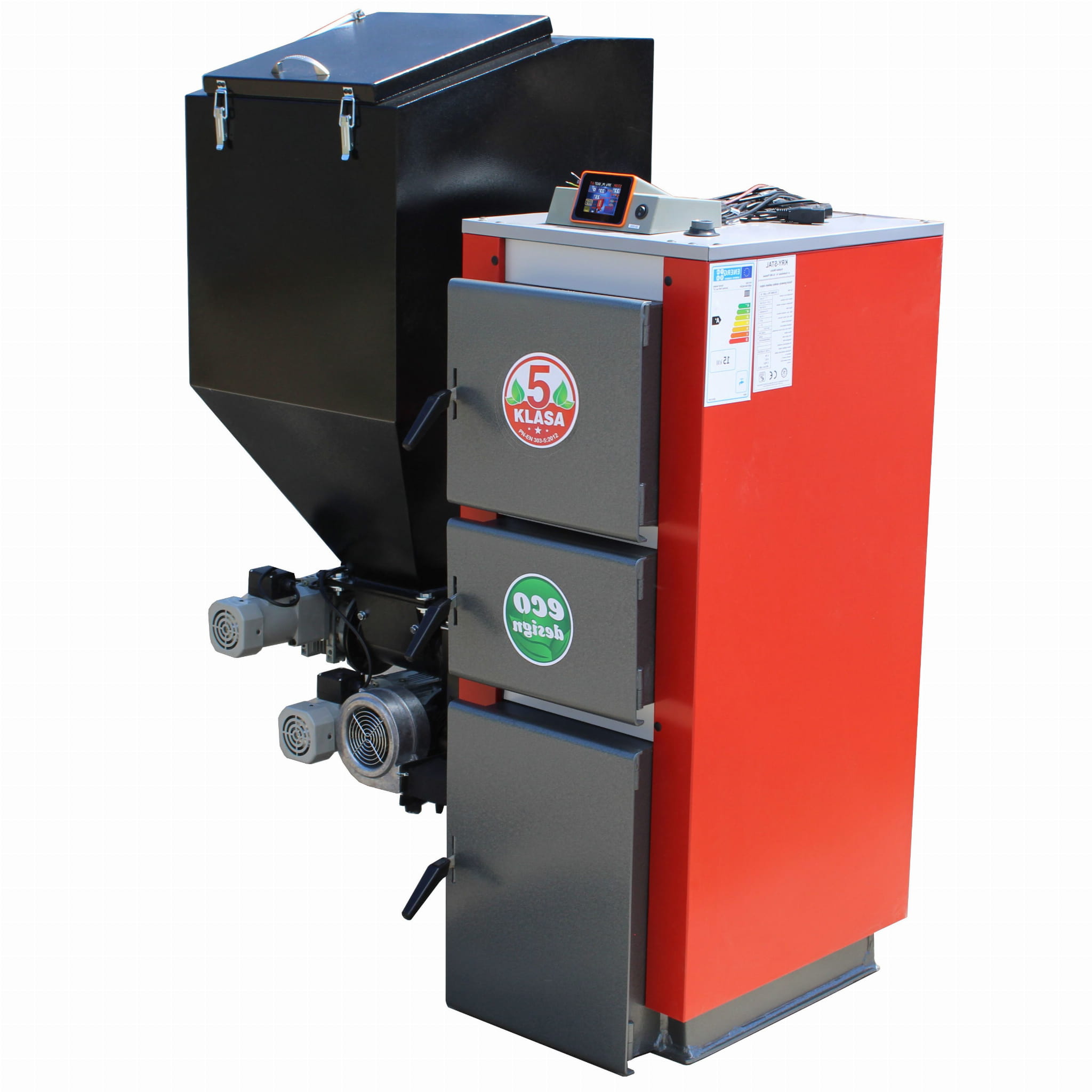 Obsługa kotła została ograniczona do niezbędnego minimum, czyli okresowego uzupełnienia pojemnika na paliwo oraz usunięcia resztek popiołu. Zastosowanie automatycznego algorytmu sterowania systemem podawania paliwa umożliwia bardzo korzystnie wpływa na ekonomiczność kotła oraz optymalizuje ilość zużytego opału. Kotły CO na pellet standardowo wyposażone są w palnik renomowanej firmy Technix, gwarantujący długotrwałą i bezawaryjną pracę. Równie ważnym elementem wyposażenia kotłów grzewczych jest nowoczesny sterownik z algorytmem PID odpowiadający za płynną regulację temperatury oraz zarządzanie procesem spalania.
