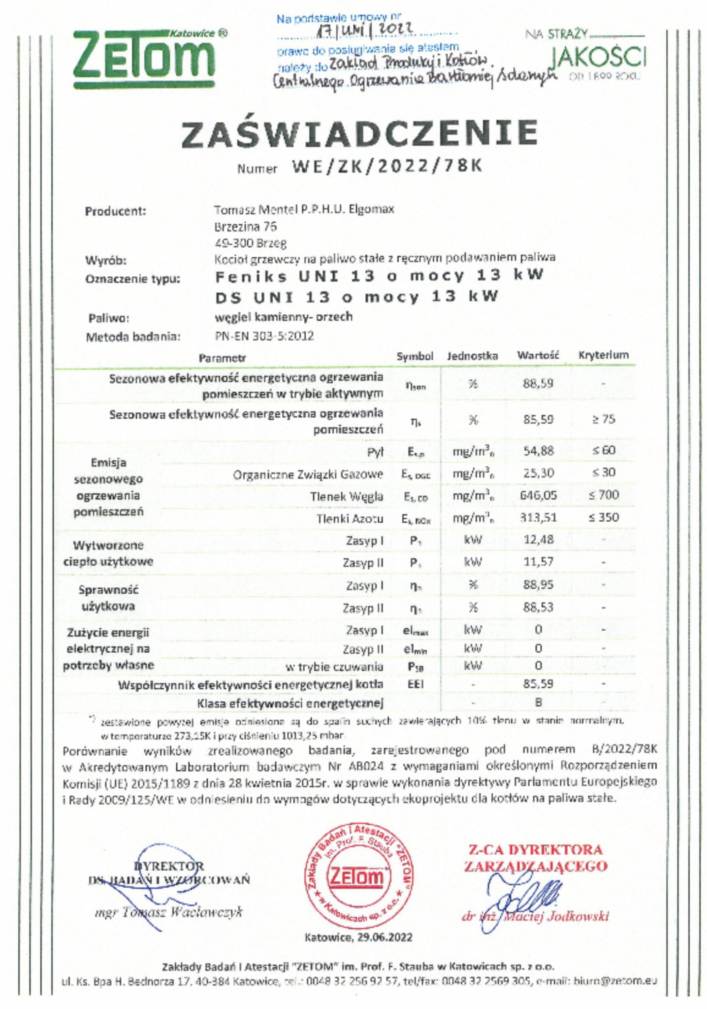 Z certyfikatami 5. klasy (PE-EN 303-5:2012) i ecodesign (2009/125/WE)