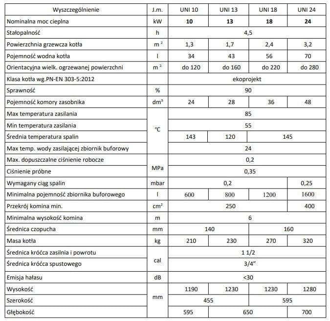 - klasa kotła: 5 klasa / Ecodesign - Ekoprojekt